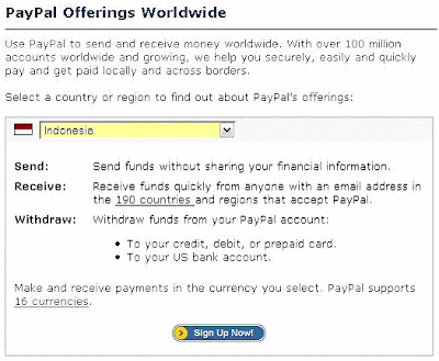 Kabar gembira buat online marketer Indonesia, PAYPAL - salah satu alat pembayaran online yang paling digemari di seluruh dunia , kini mengijinkan orang Indonesia untuk bisa MENERIMA pembayaran melalui PAYPAL! Kunjungi situsnya sekarang juga: |